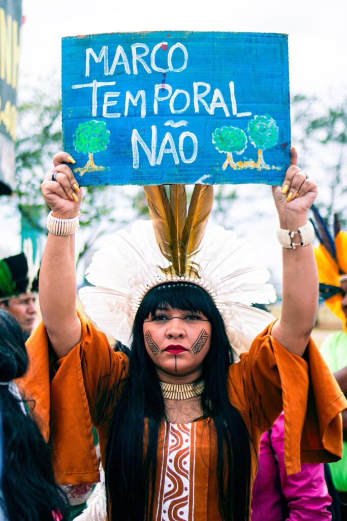 A tese do marco temporal defende que os povos indígenas só podem reivindicar direitos pelas terras onde já viviam quando a Constituição Federal entrou em vigor, em 5 de outubro de 1988.