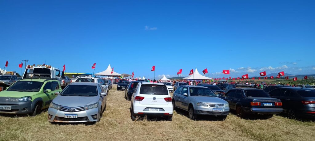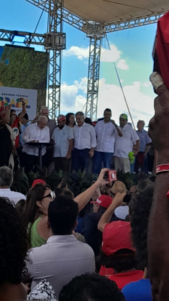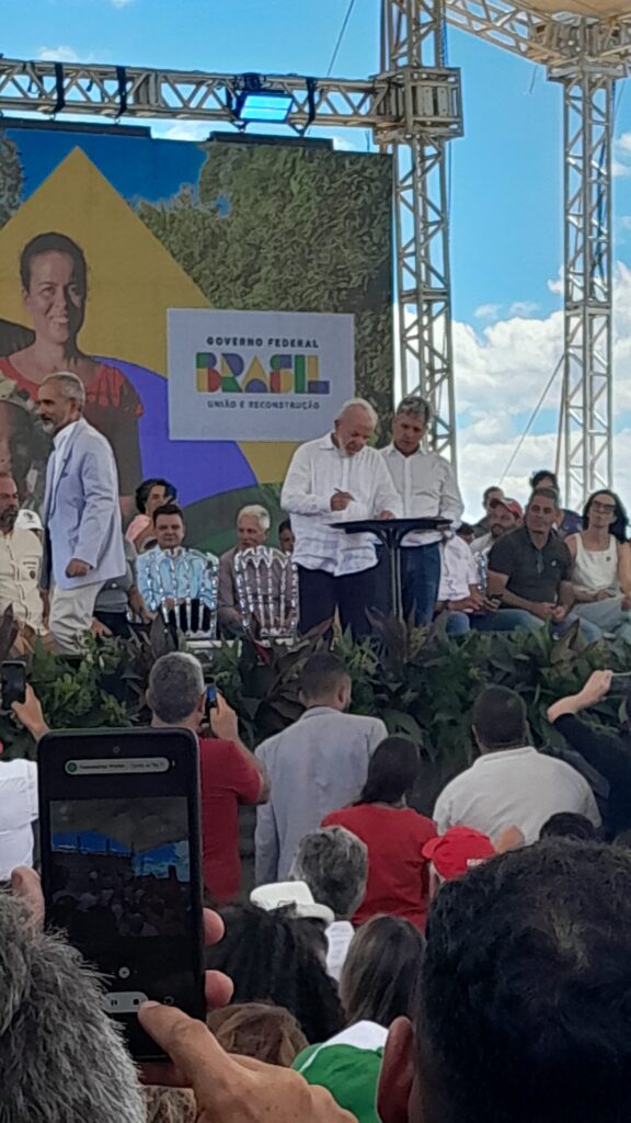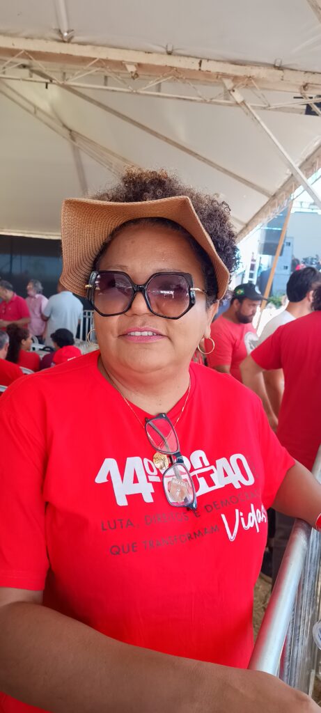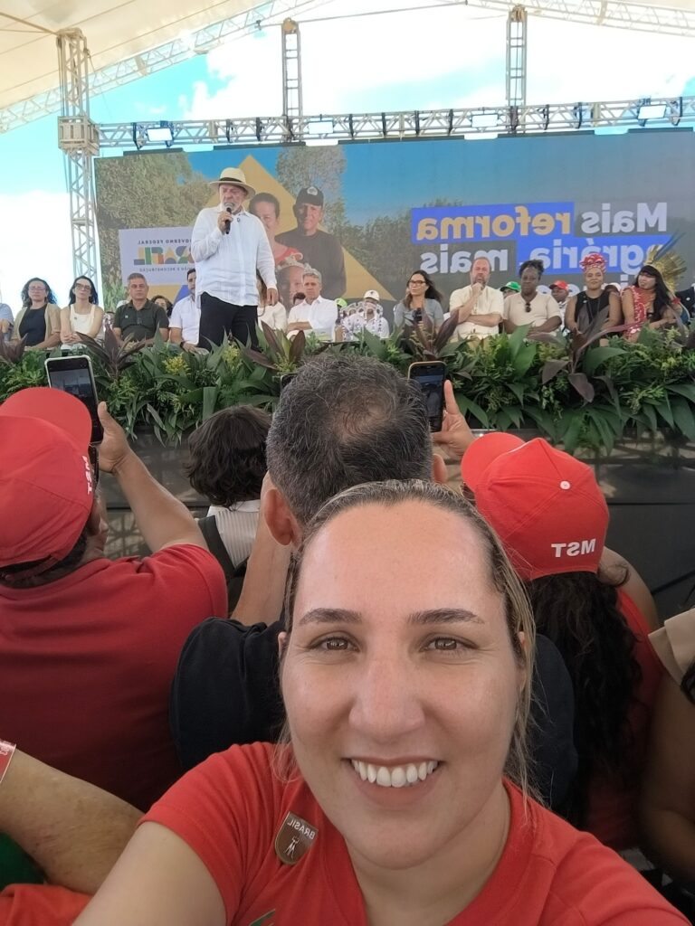 Dirigente da CUT MG – Denise de Paula Romano – “Bom, é uma reparação Histórica, 27 anos que está terra em disputa, nós já vimos muitas coisas ruins aconterem aqui, mas hoje estou de festa, é um dia de celebração para todos os lutadores e lutadoras do povp aqui do Campo do Meio, parabéns ao MST e parabéns ao Presidente Lula pela iniciativa!.