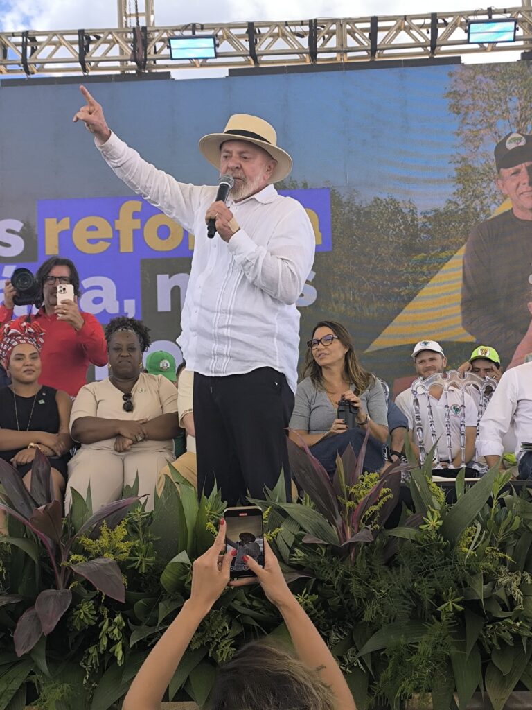 DIA SETE DE MARÇO DE 2025 LULA FEZ HISTÓRIA MAIS UMA VEZ. NA ESCOLA DO QUILOMBO CAMPO GRANDE NO MUNICÍPIO DE CAMPO DO MEIO QUE MARGEIA O LAGO DE FURNAS NO SUL DE MINAS GERAIS, QUANDO DESAPROPRIOU AS TERRAS DA ANTIGA USINA, AGORA O POVO DEQUELE LOCAL PODE DORMIR COM MAIS TRANQUILIDADE E CONTINUAR A CONTRUIR SEUS SONHOS. ELES QUE DURANTE 11 VEZES FORAM DESPEJADOS DAQUELE LOCAL. MAS RESISTIRAM COM VERDADEIROS HERÓIS QUE SÃO E HOJE CONQUISTARAM A TERRA PARA PLANTAR OS ALIMENTOS TÃO NECESSÁRIOS NAS MESAS DE NOSSO POVO.