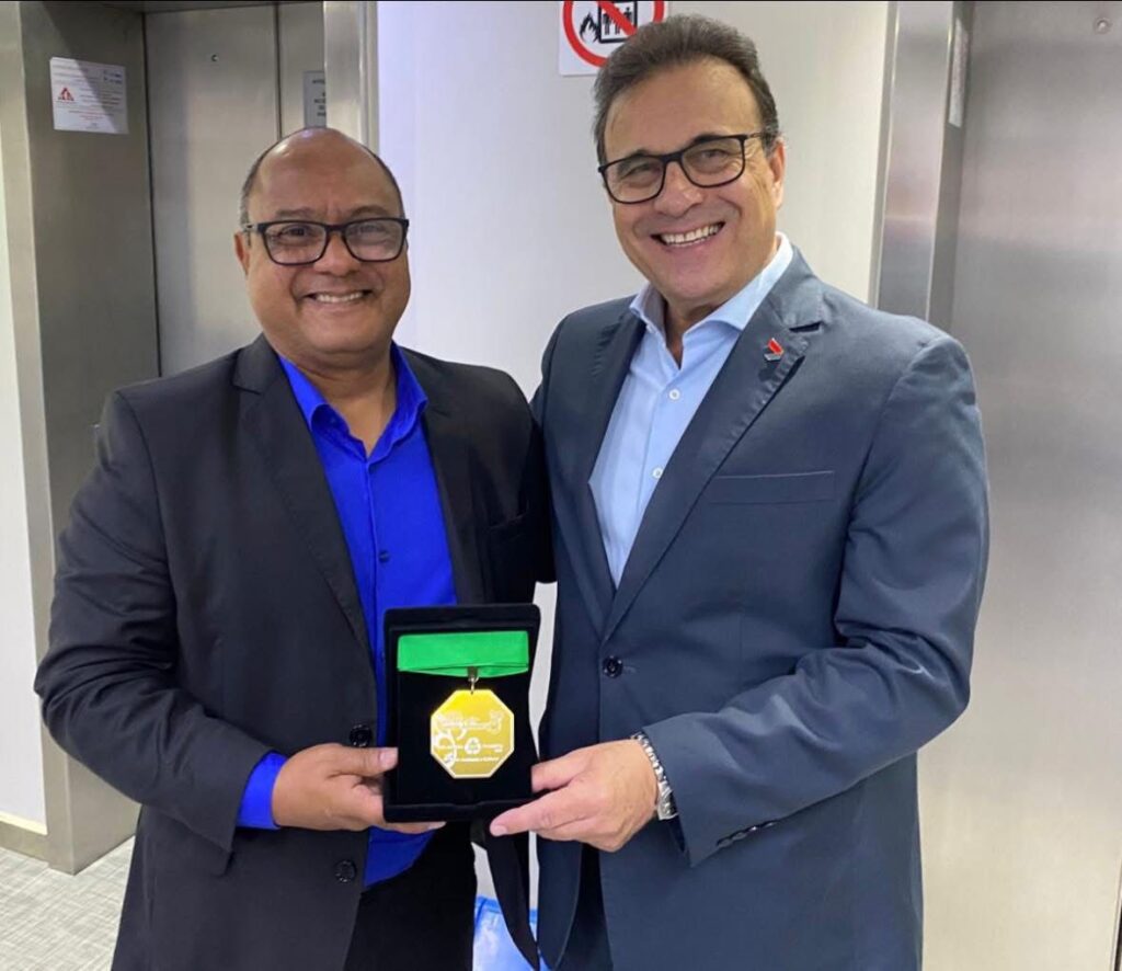 A Associação Ambiental e Cultural Zeladoria do Planeta trás publicidade da entrega oficial do PGA Prêmio Gestão Ambiental ao BDMG na pessoa de seu presidente Gabriel Viégas Neto, pelo processo voluntário de descarbonização de seus impactos do ano de 2024 com plantio de mudas no Parque Estadual Serra Verde a equipe de Meio Ambiente do BDMG também participou da entrega representadas por Cinthia Bechelaine e Glaucia Silva. O projeto ainda está concorrendo ao destaque do ano!