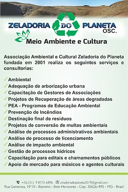 A Associação Ambiental e Cultural Zeladoria do Planeta representa a sociedade civil em instâncias importantes do meio ambiente em Minas Gerais, como o COPAM (Conselho Estadual de Política Ambiental) e várias Câmaras Técnicas (CID, CMI, CNR, URCs).