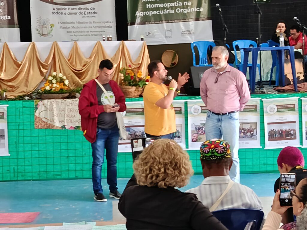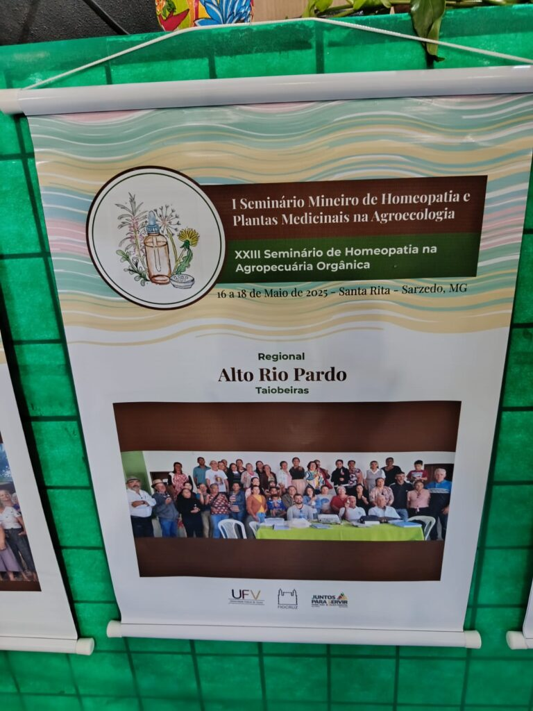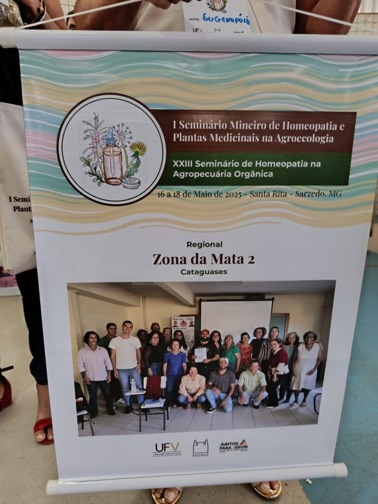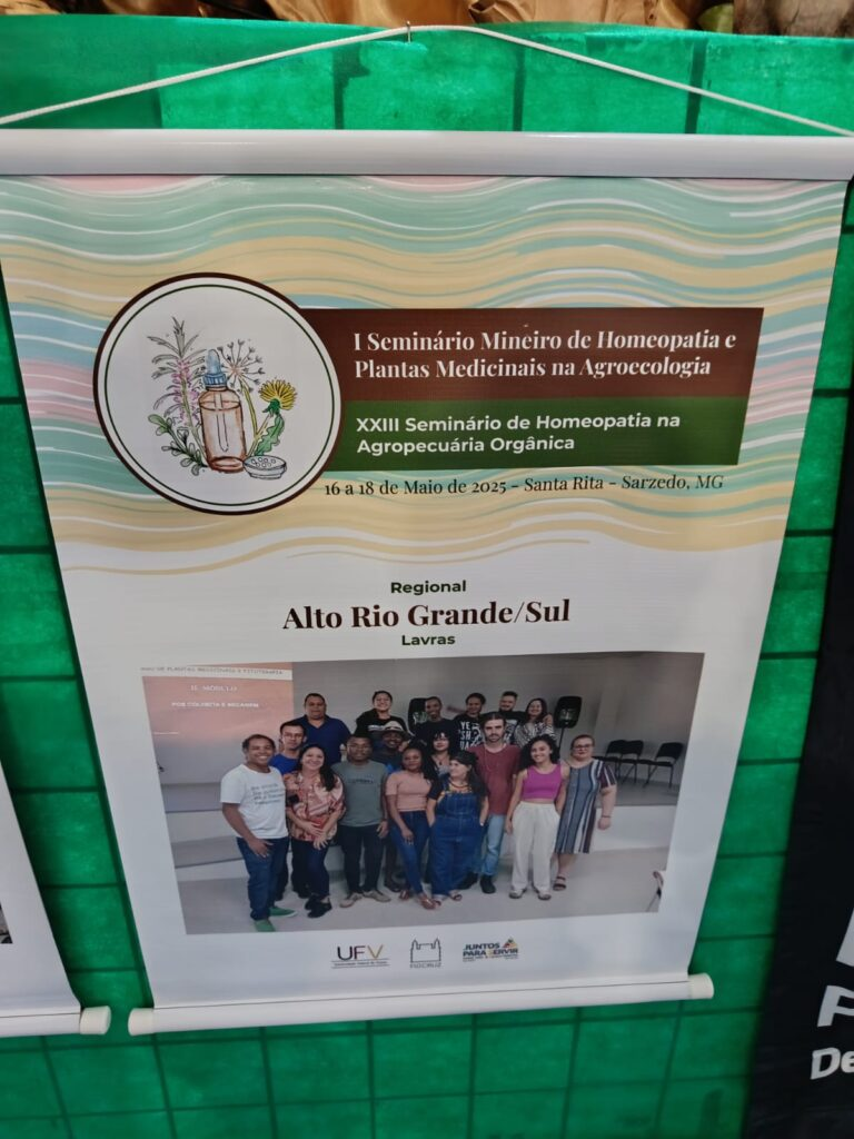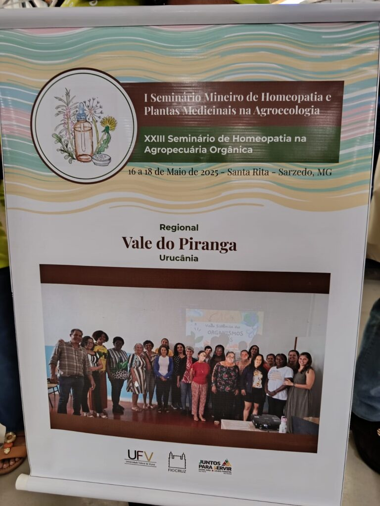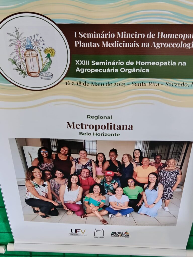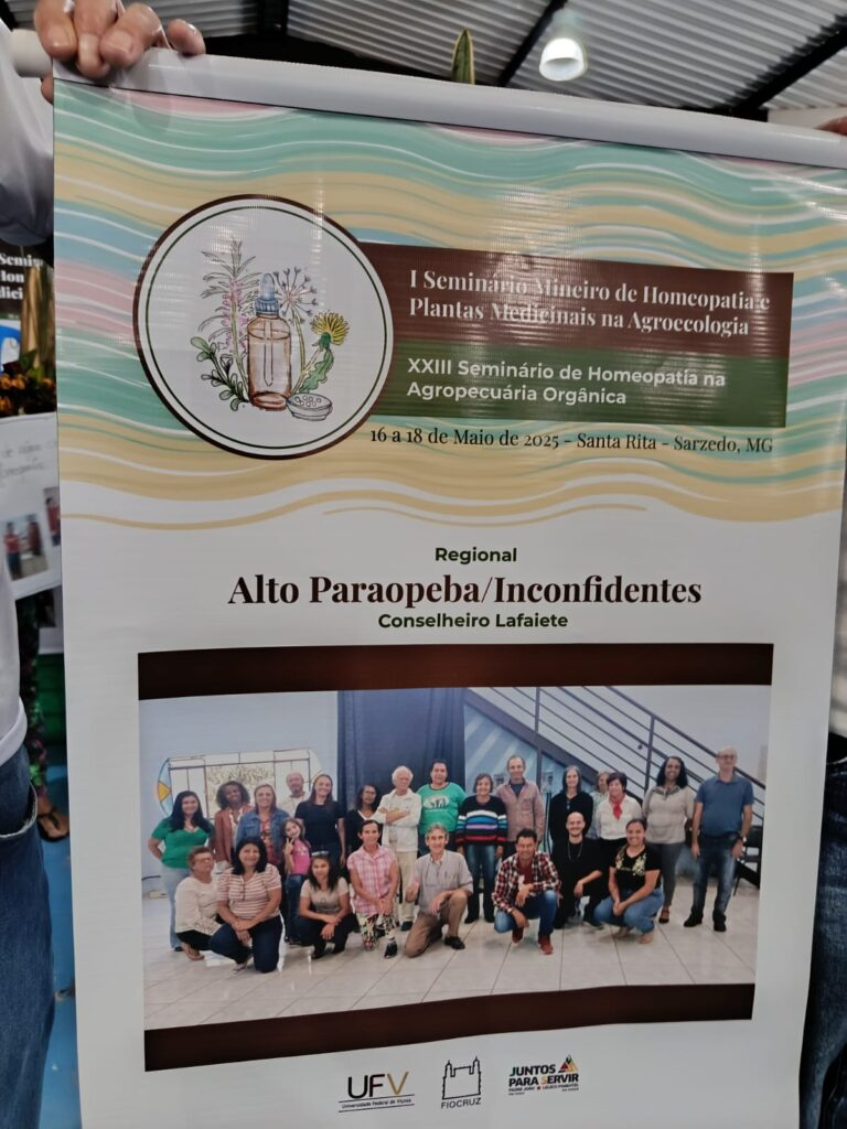 I Seminário Mineiro de Homeopatia e Plantas Medicinais na Agroecologia, realizado de 16 a 18 de maio de 2025, na Pousada do Rei, em Sarzedo (MG).