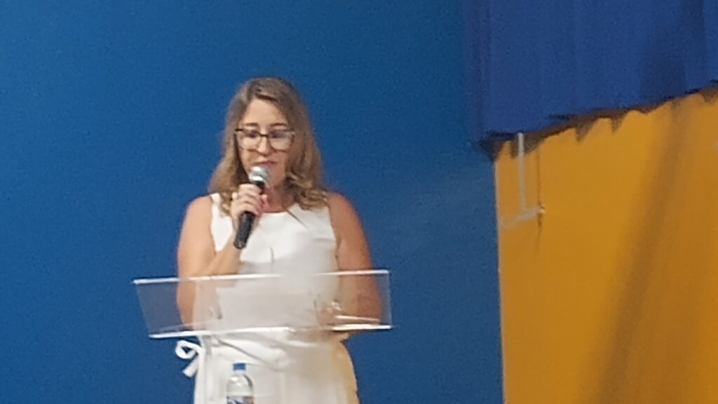 A diretora Rosely de Araujo Rosa deu inicio a solenidade convidando a todos e todas a cantar o hino nacional brasileiro. Logo após fez o uso da palavra: